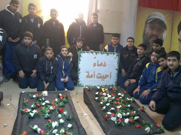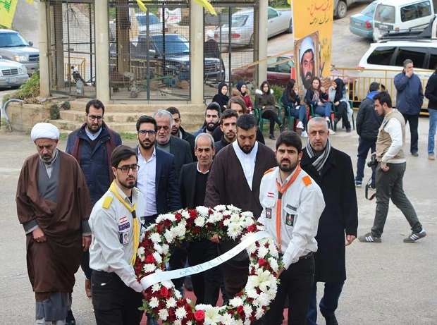 المنطقة الأولى: بحضور عدد من الأساتذة وطلاب الجامعات والمعاهد، أحيت التعبئة التربوية في المنطقة الأولى ذكرى القادة الشهداء وذلك بأداء قسم الولاء على نصب القائد عماد مغنية في طيردبا ووضع اكاليل من الورد باسم طلاب الجامعات والتعبئة التربوية وتجمع المعلمين في الجنوب.