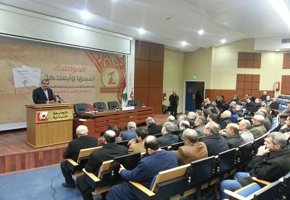 أضاف: "اذا كنا نعتقد ان المواطنة موجودة بمعزل عن فكرة الدولة وتكون كما اننا نخلق بدون وزن، ولا يمكن ان نصل الى مفهوم للمواطنة بمعزل عن فكرة الدولة الوطنية في اطار القوانين والعادات والتقاليد ومن خلال البعد السياسي، الاقتراع العام للمواطنين، البعد الاجتماعي: المساواة بين الجنسين وطنيا والبعد الاقتصادي حصول الفرد على نصيب عادل في الثروة الوطنية".