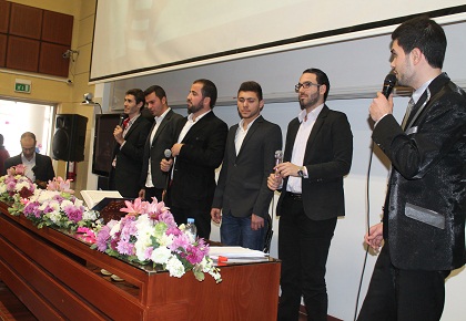 ومن طيب الكلام، إلى أعذب الأناشيد والمدائح باقة انشادية قدّمها طلاب من الكلية، ليختتم الإحتفال بتقطيع قالب الحلوى الذي حمل شعار كلية الطب.