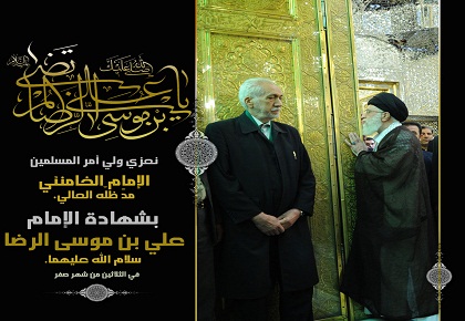 · الشهادة: استشهد بالسم في شهر صفر، سنة ثلاث ومائتين من يوم الجمعة وقيل في شهر رمضان وهو يومئذٍ ابن خمس وخمسين سنة، ودفن في دار حميد بن قحطبة في بقعة هارون الرشيد في قرية يقال لها سناباذ.