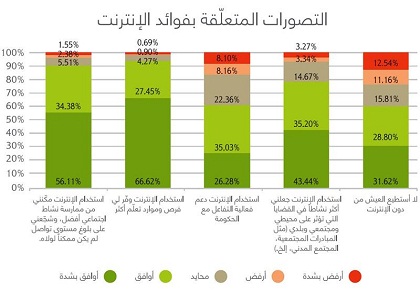 والتفاعل مع الحكومة لملايين الأشخاص»، بالرغم من أنّ نسبة مستخدمي الإنترنت العرب