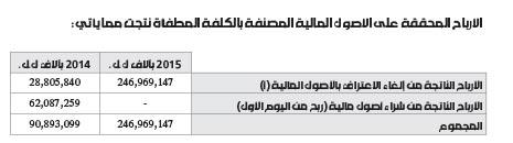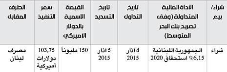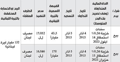 أجرت المجموعة، في خلال عام 2015، عدة عمليات بيع ومبادلة أخرى على سندات حكومية لبنانية وشهادات إيداع مصدرة من مصرف لبنان نتجت منها أرباح بلغت 15.9 مليار ليرة لبنانية و34.4 مليار ليرة لبنانية على التوالي.