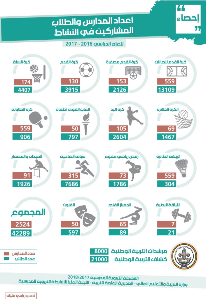 تدرج الفنون كالمسرح والعزف والغناء وفن الخطابة تحت خانة «اللعبة» ضمن الأنشطة التربوية المدرسيّة التي تنظمّها الوحدة الرياضيّة سنويّاً. يجري الخلط بين الفنون وعددٍ من الرّياضات بالرغم من أنّهما لا يلتقيان أبداً. هل يمكن لأستاذ الرياضة البدنية أن يعلّم العزف مثلاً؟ بحسب الإحصاء الأخير، فإنّ 597 طالباً وطالبة من 50 مدرسة شاركوا في دورات الفنون المتنوعة.