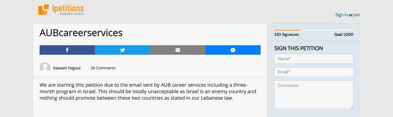 طلاب الجامعة الذين تلقوا هذه الرسالة رؤوا فيها أمرا غير مقبولا لان "اسرائيل" عدو للبنان ولا يجب الترويج للعلاقة بين لبنان والكيان وفق ما ينص القانون اللبناني الذي من المفترض ان تخضع له كل الجامعات العاملة في لبنان بما فيها الجامعة الأميركية.