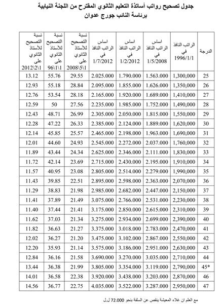 (على رقم الدرجة 45) من 3354000 ليرة الى 3805000 اي بزيادة 451000 ليرة لسنة 2054.
